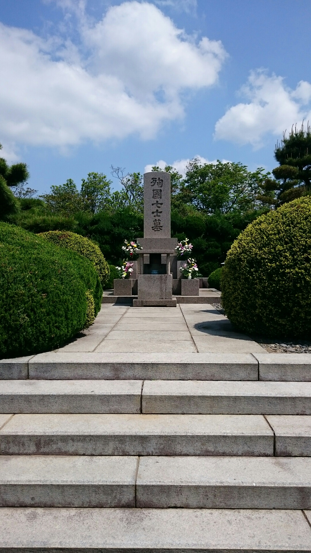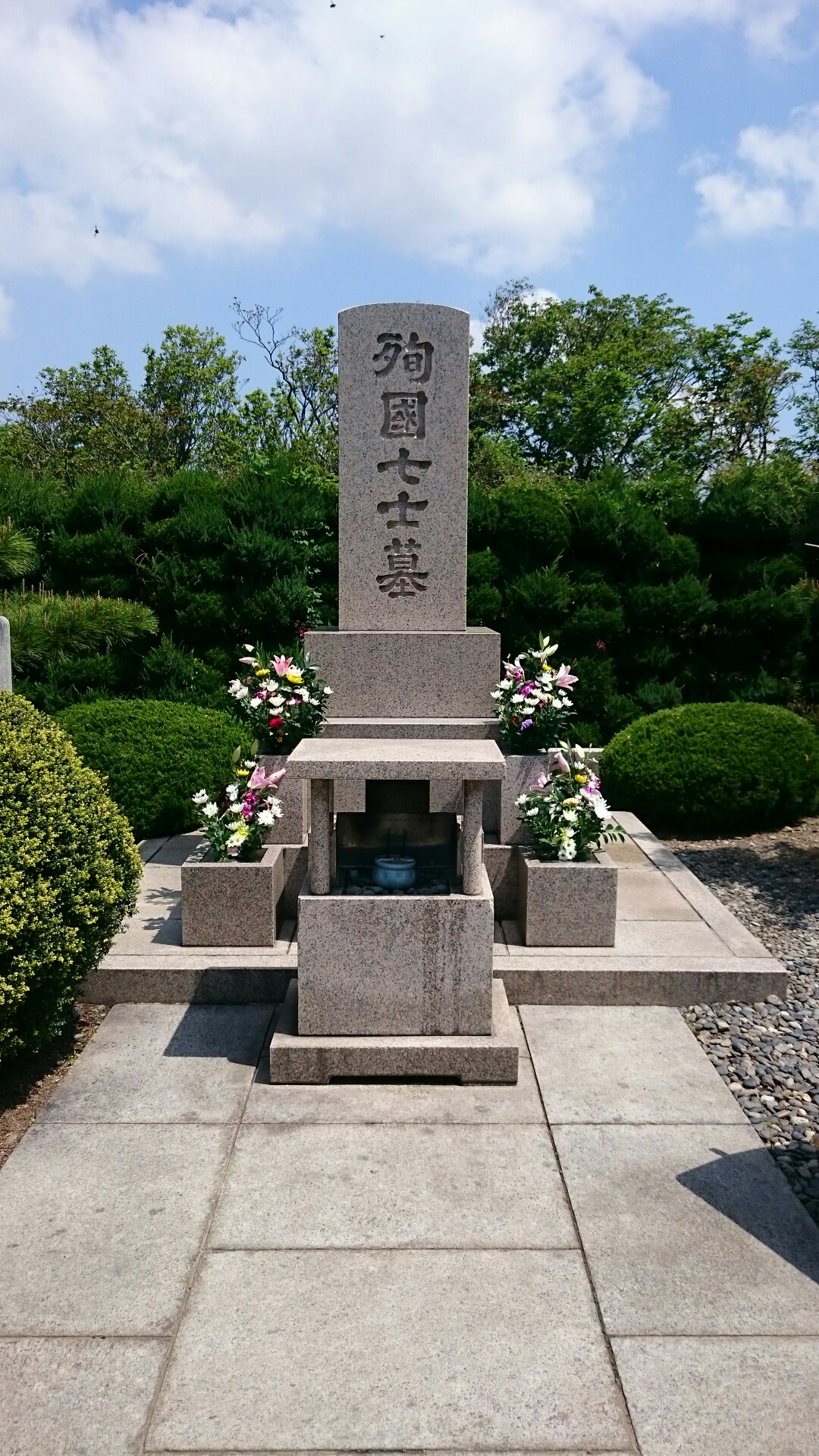 大きな門を過ぎ、車が全くない駐車場に車を置いて、殉国七士の墓に。お線香をあげ、お参りをしました。